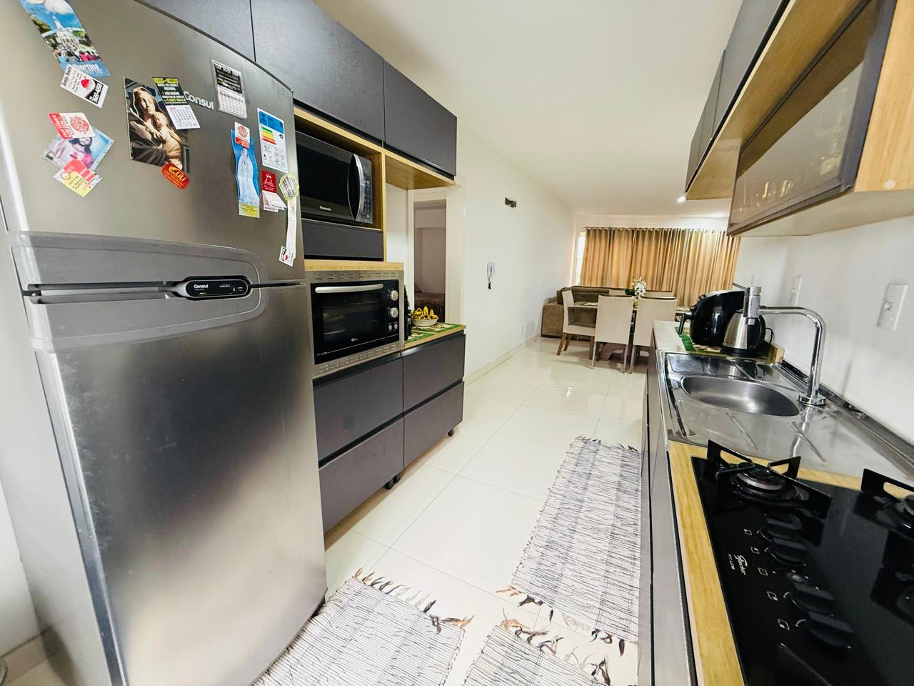 Apartamento semimobiliado no PARQUE DAS PALMEIRAS ✅2 dormitórios; ✅Sala e cozinha integradas; ✅Banheiro social; ✅Área de serviço; ✅Sacada; ✅Garagem coberta. ✨Residencial com salão de festas e Playground ➡ Permanecem os móveis sob medida da cozinha, fogão de mesa e geladeira