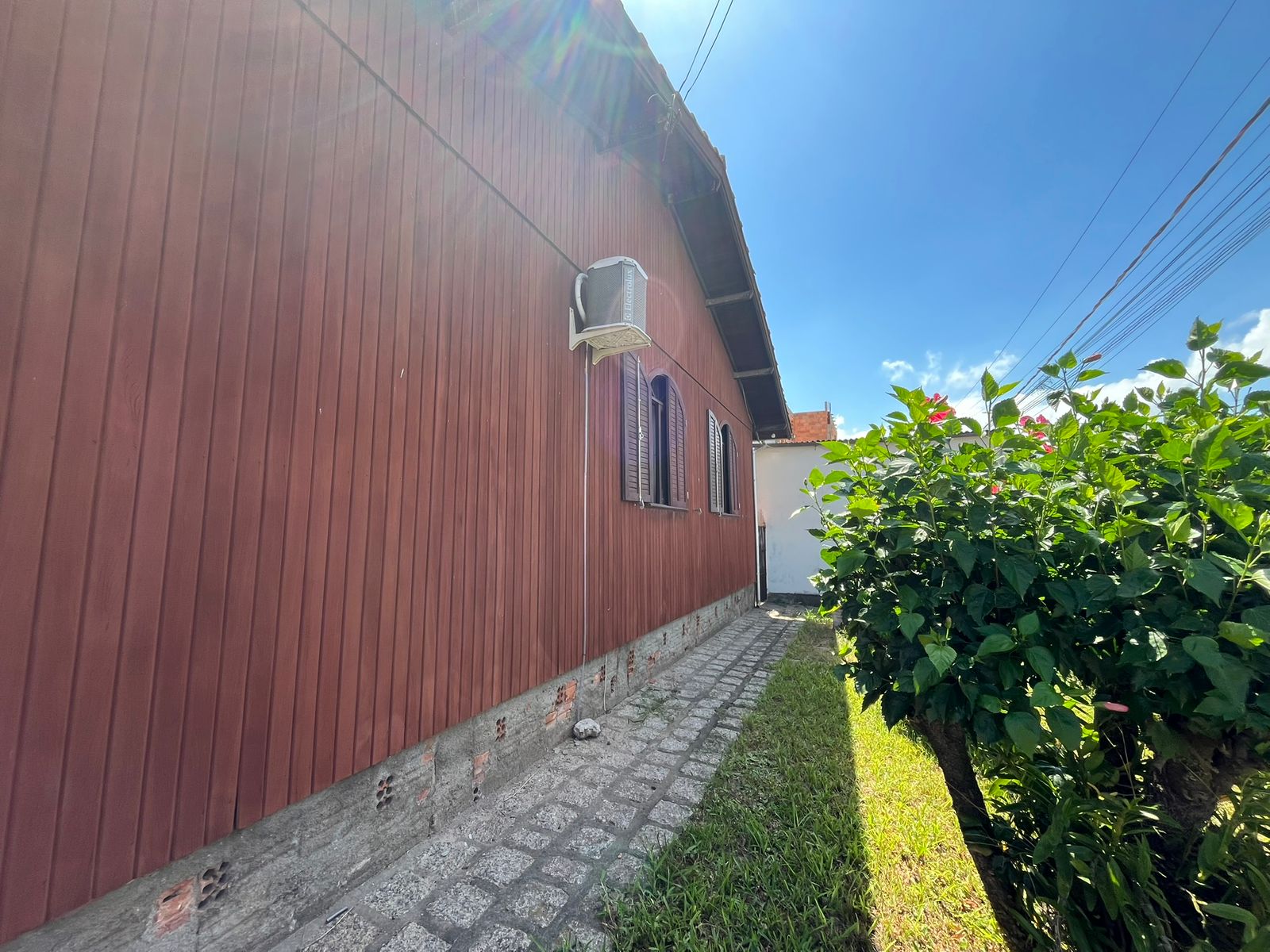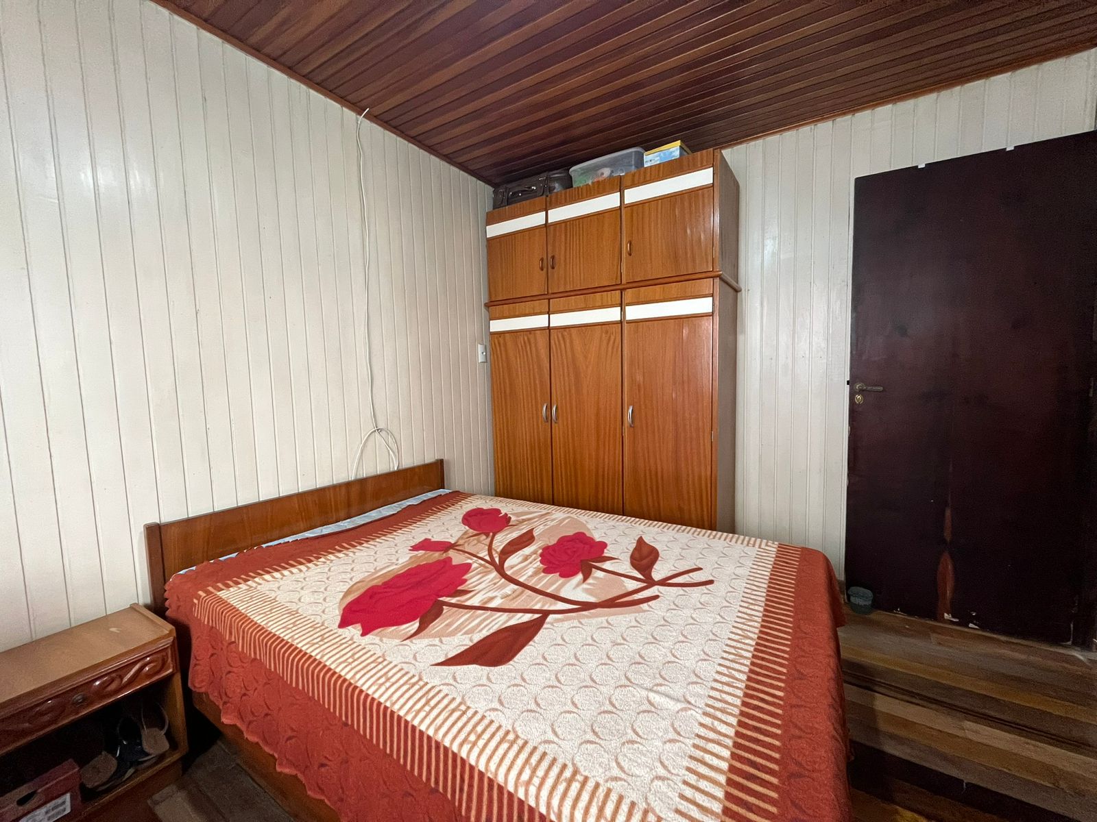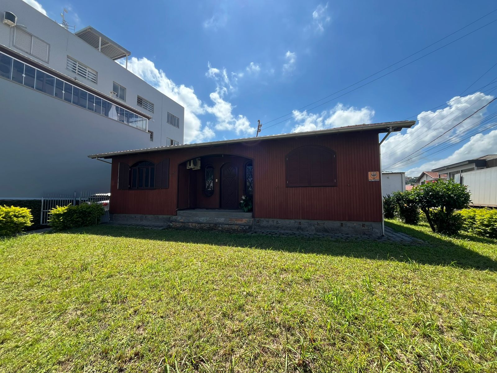 Casa de esquina, construída em madeira de lei dupla, oferecendo amplitude e excelente estrutura. O imóvel conta com 4 quartos, sendo 1 suíte, 2 salas, 2 banheiros sociais, além de uma edícula em alvenaria nos fundos. Possui também garagem fechada e um terreno amplo com aproximadamente 410 m².