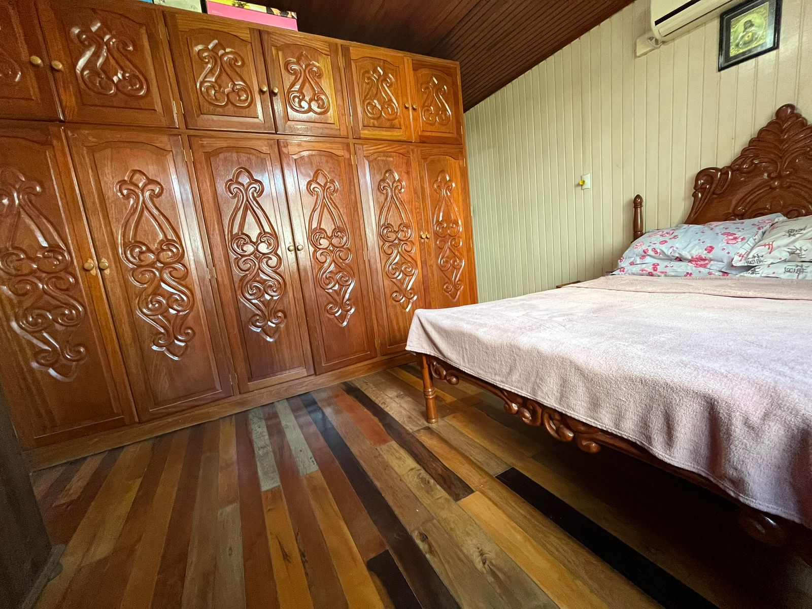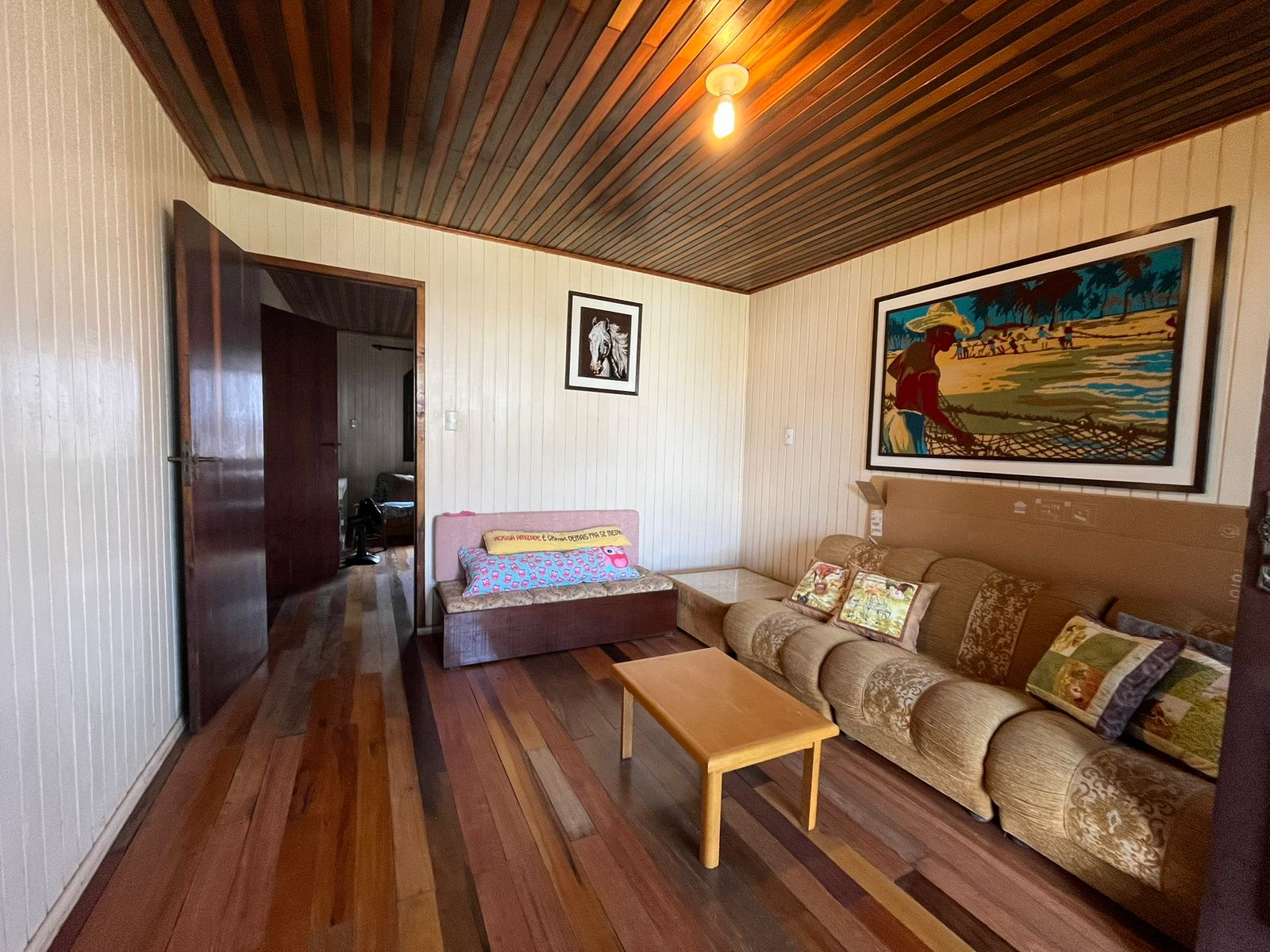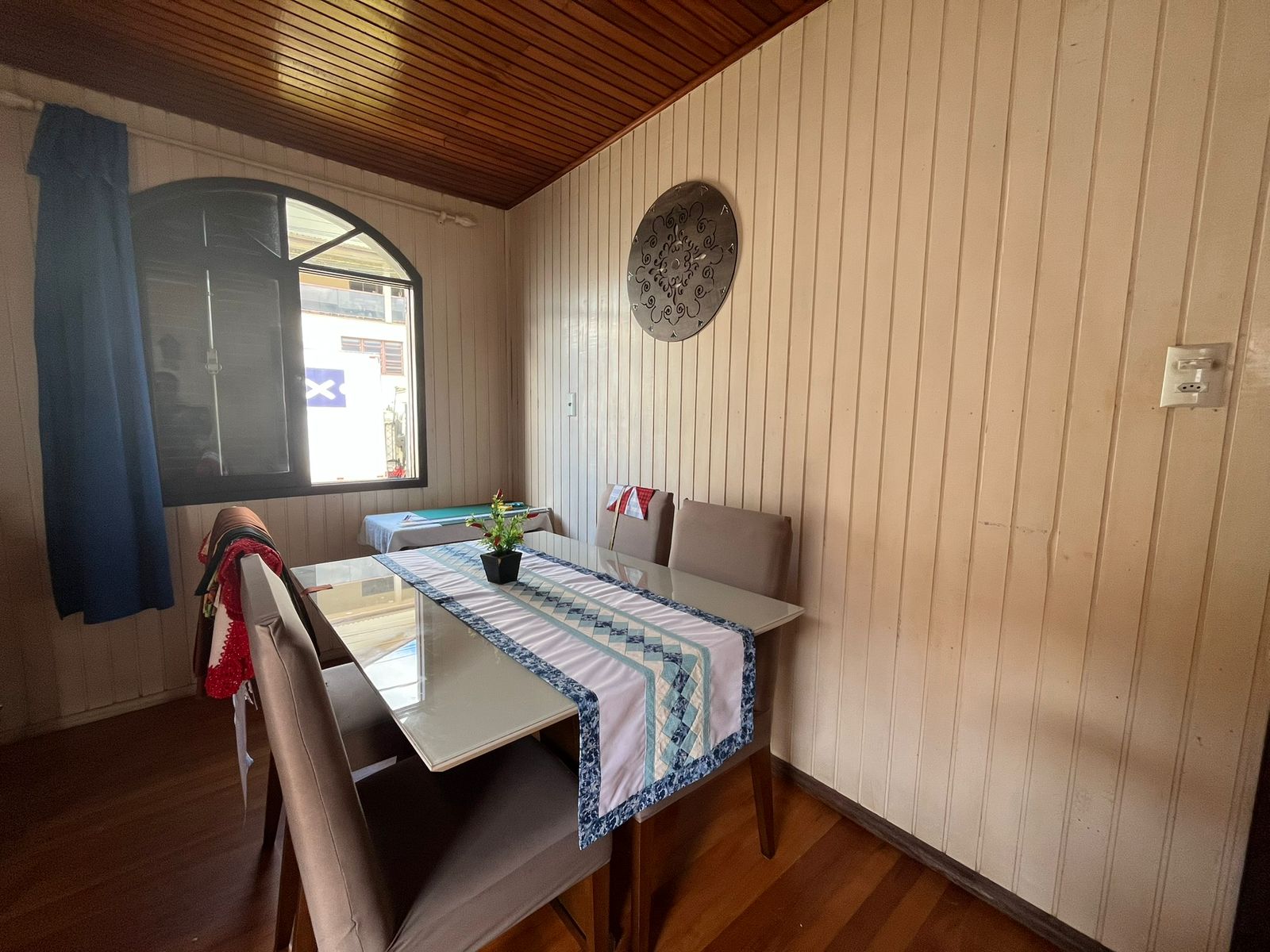 Casa de esquina, construída em madeira de lei dupla, oferecendo amplitude e excelente estrutura. O imóvel conta com 4 quartos, sendo 1 suíte, 2 salas, 2 banheiros sociais, além de uma edícula em alvenaria nos fundos. Possui também garagem fechada e um terreno amplo com aproximadamente 410 m².