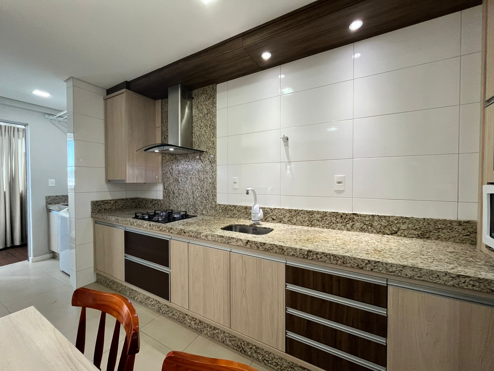 ✨ Sala e cozinha integradas com churrasqueira